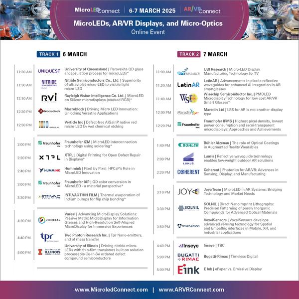 We have already confirmed a great list of exhibitors and speakers, including Google, Intel, PlayNitride, ASML, Corning, TrendForce, MicroOLED, LAM Research, Hexagem, Ingantec, The University of Michigan, Aegis Rider, Aledia, AIST, DELO, Haylo VC, Karl Guttag, the Buhler Group, Smartkem, Nanoscribe,