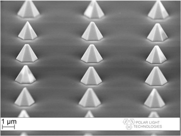- A major challenge of the InGaN/GaN material system is the internal strain due to the lattice-mismatch, which can be better handled in PLTs pyramidal structures enabling manufacturing blue, green, and red microLEDs with the same material