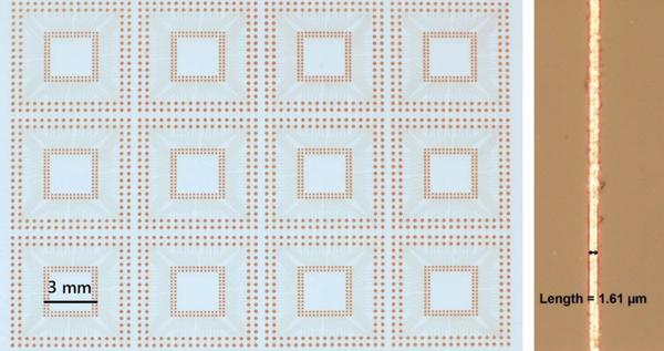 Figure 7. Fan-out circuit demo on glass material fabricated using SSAIL technology, courtesy of Akoneer.